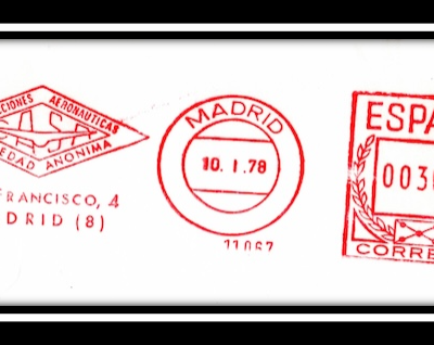 Franqueo mecánico del año 1978 correspondiente a la empresa Construcciones Aeronáuticas, S. A. (CASA), que durante la mayor parte de su historia ha sido la empresa líder de la industria de construcción aeroespacial en España.